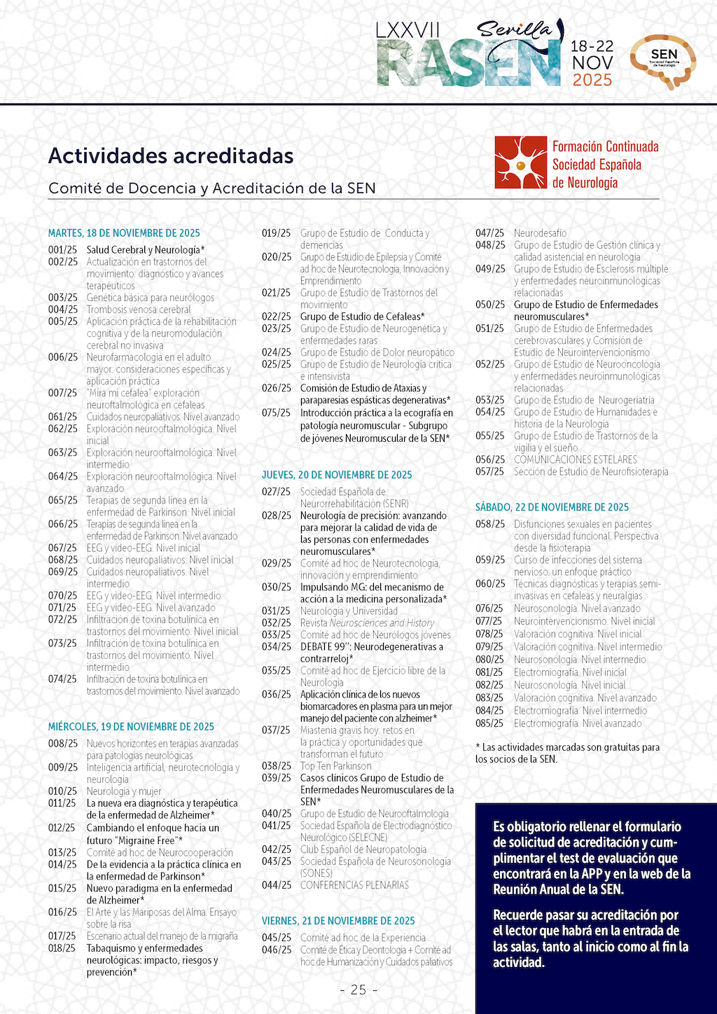 LXXVII Reunión Anual de la Sociedad Española de Neurología